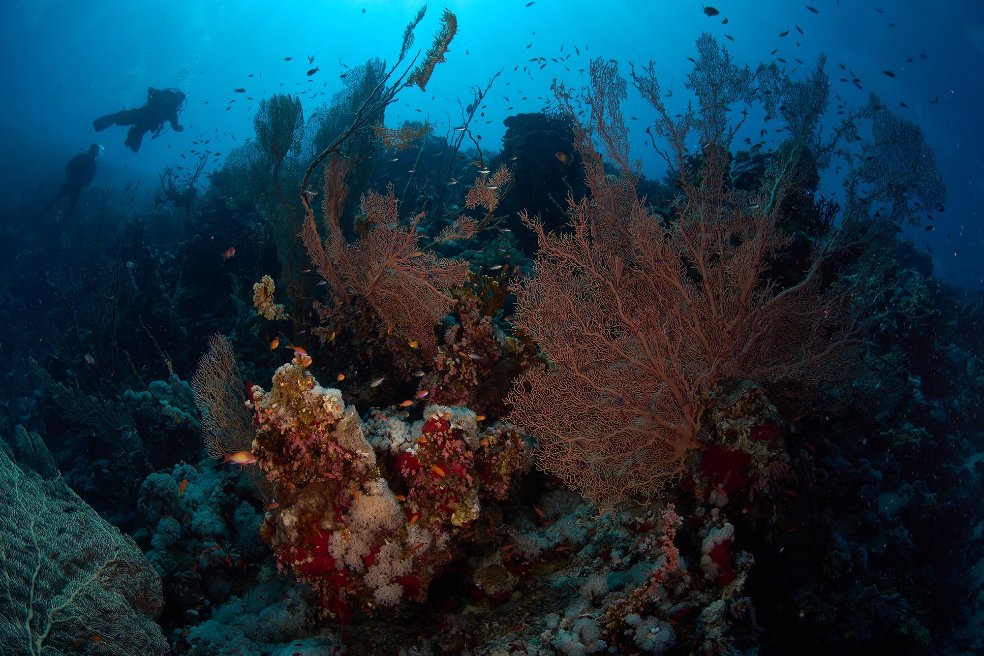 В прошлом году, в Красном море (Шарм-эль-Шейх), наблюдался катастрофический подъем температуры воды. В итоге, погибли многие кораллы. Мои любимые сады горгонарий, также, понесли большие утраты. Поэтому, на фото можно видеть множество голых ветвей.
