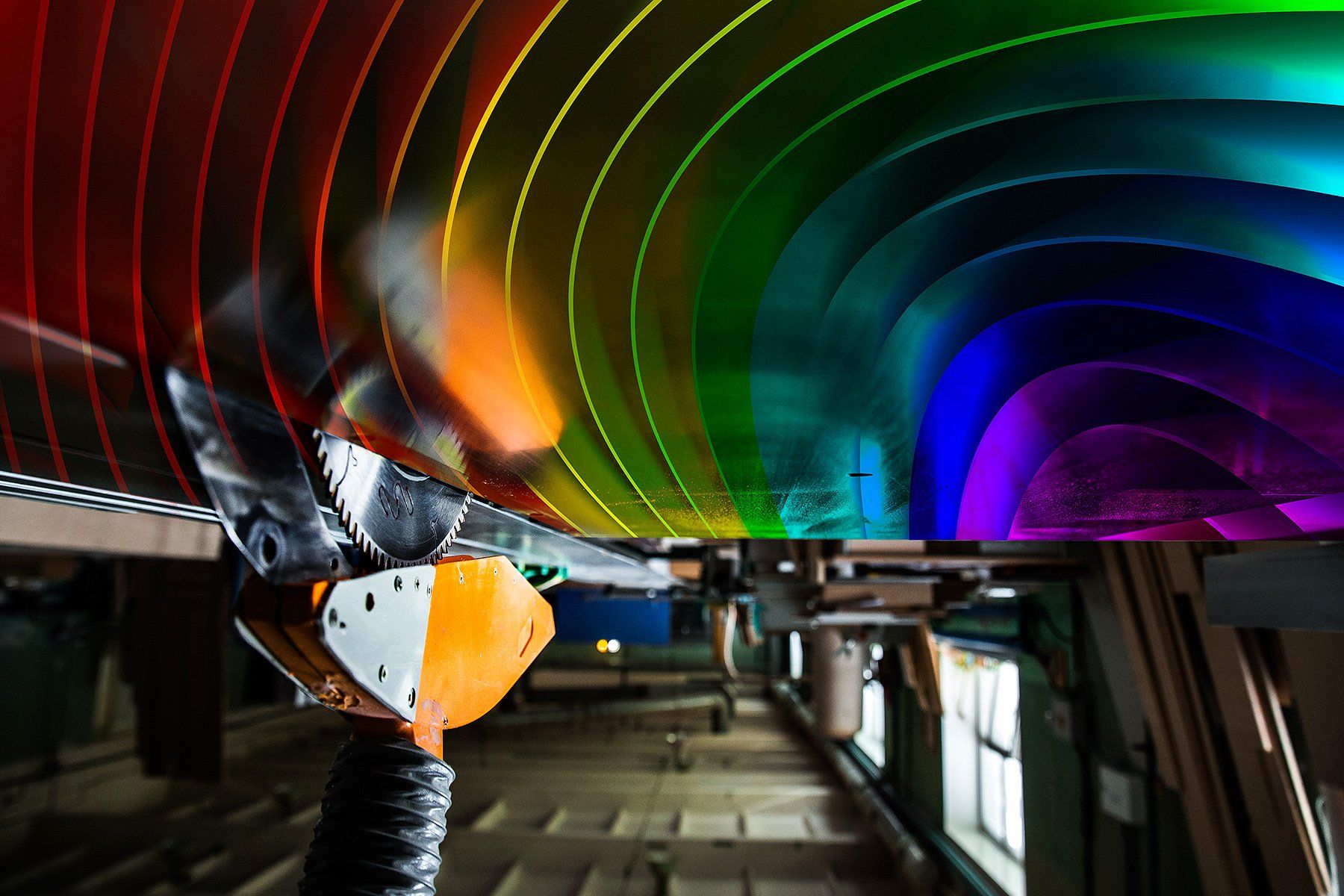 Ставили задачу снять арт на производстве мебельной фабрики, чтобы можно было повесить на производствах предприятий или у них же в офисах. Нужно было, чтобы фото не были похожи на привычные рекламные фото. Серию картин продали на благотворительном аукционе во время дня рождения, деньги отправили на лечение детей в нашем городе. 5 моих фото продали почти за двести тысяч рублей. Не знаю много это или мало, но я впервые участвовал в подобном проекте. В целом я доволен, что сделал доброе дело. А "радуга". потому что мебельная кромка яркая и цветная)
