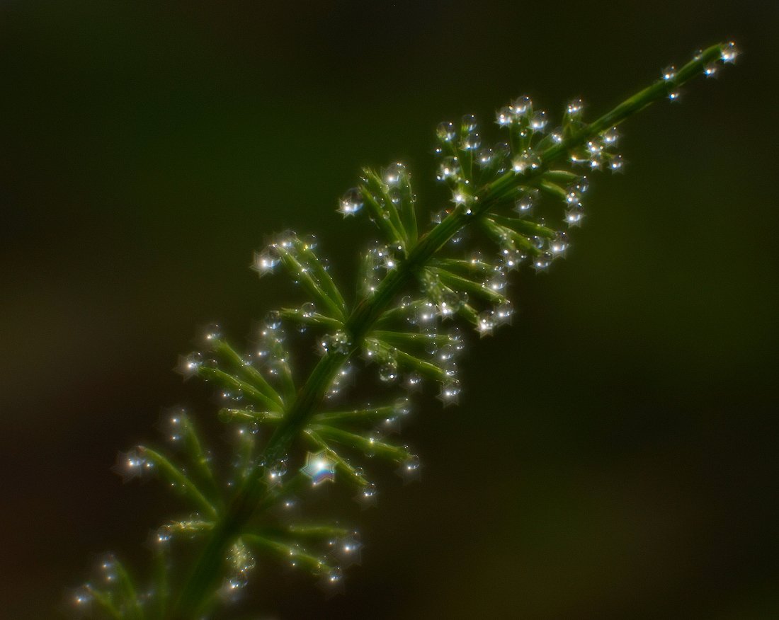 Объектив здесь очень большую роль сыграл.Он сам по себе отличный для макро,а в роли монокля позволяет снимать как с минимальной дистанции,так и пейзажи делать.Причём обычно у моноклей диафрагму перед линзой удаляют,а здесь она присутствует.Чуть поджал-и появились те самые циркулярные звёздочки :)