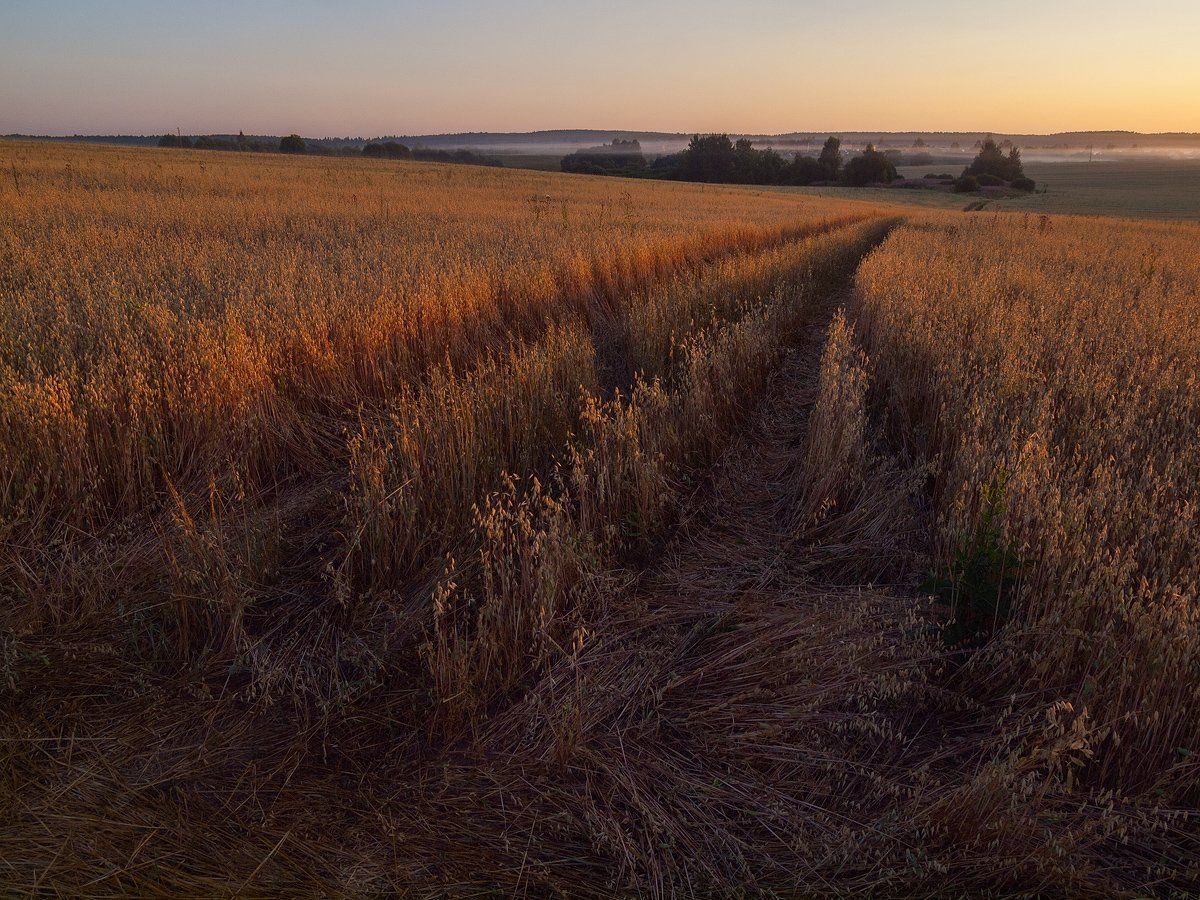 ... но,какой-то варвар по овсяному полю на колёсах пропёр... :-(( ..,и,опять же,но,без этого картинка бы проиграла...