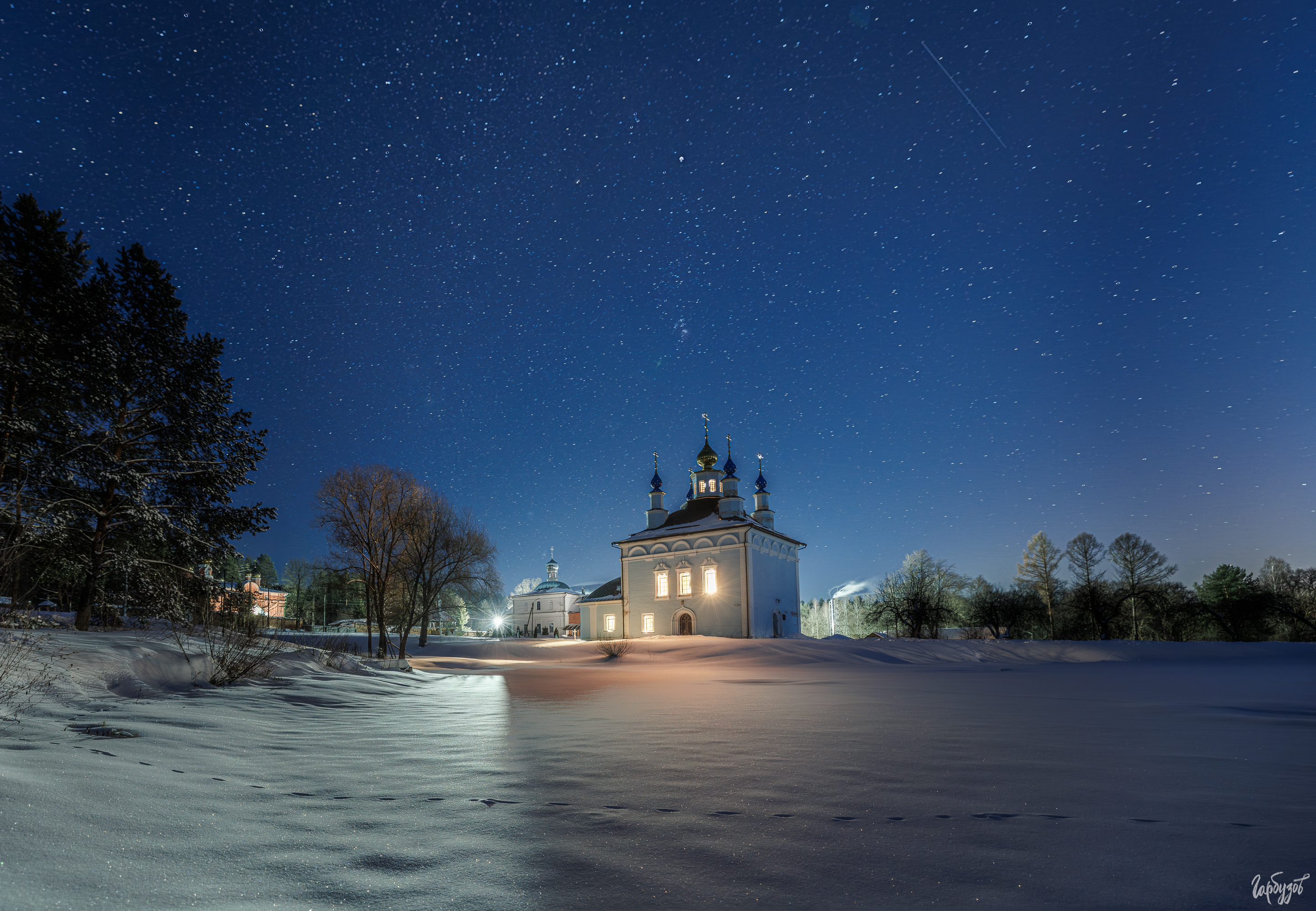 Свято-Введенский Макарьевский Жабынский мужской монастырь ночью.
