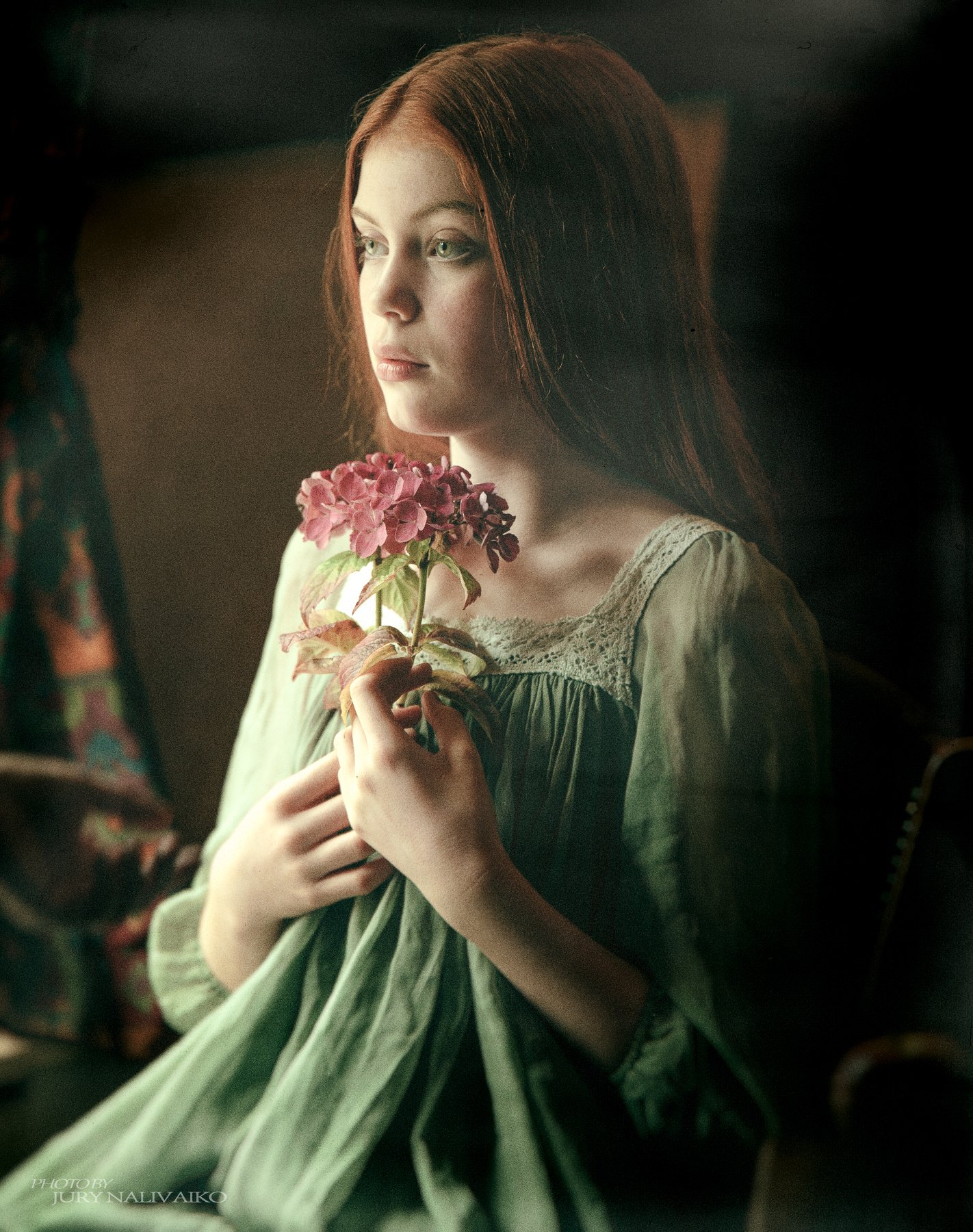 когда сделал эту фотографию, не сразу понял что "натворил"..:) только через время, я "очнувшись" понял что эта фотография имеет "потенциал". Она мне сразу навела на мысль что это Джульетта из Шекспира, ее взгляд, хрупкость, цветок в руке, и чистоплотная молодость..Обработка сделана в соответствии с задумкой старой фотографии или кадра из фильма..