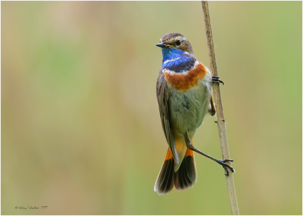 Варакушка.Здесь на фото самец "пожилой".У молодых самцов охра на грудке более светлая,и окрас похож на "триколор". Птичка - прекрасный подражатель!
