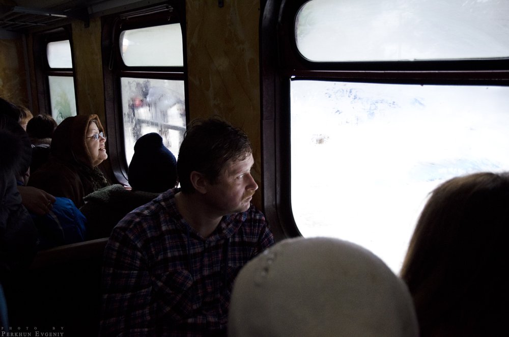 Однажды зимой я с семьей и друзьми поехал в Гуамское ущелье(Краснодарский край). Прибыв на место мы не без труда сели в небольшой ж/д состав(так как людей было немало) и поехали по самому краю отвесной скалы. Обстановка в вагоне была какой-то особенной(очень тихой, спокойной и в то же время напряженной). Я наблюдал за лицами людей, завороженными видом, открывающимся перед ними. И несмотря на то что я снимал практически в упор никто даже не обращал на меня внимание.
