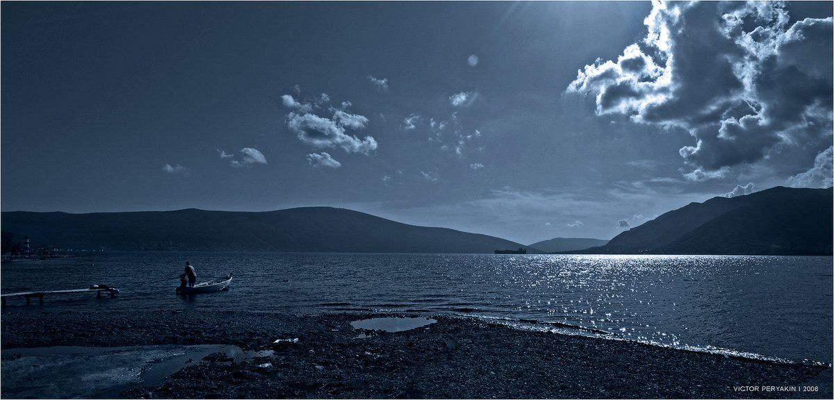 тиватский, залив, черногория, лодка, пирс, солнце, горы, море, Виктор Перякин