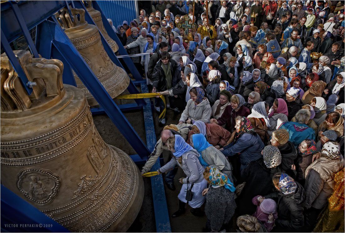 Освящение совершил игумен Мелхиседек, после чего любой желающий имел возможность собственноручно ударить в каждый из новоосвящённых колоколов.