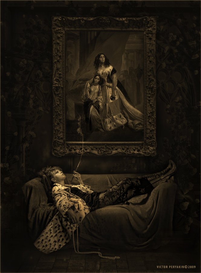 Императрица на стене (работа Карла. Брюлова). Работа задумывалась, как перекличка времен(одежда, отношения, поведение, человеческие ценности и т.д.)Каждый зритель выдвигает свою версию, и это главное.Спасибо Вам за добрые слова!