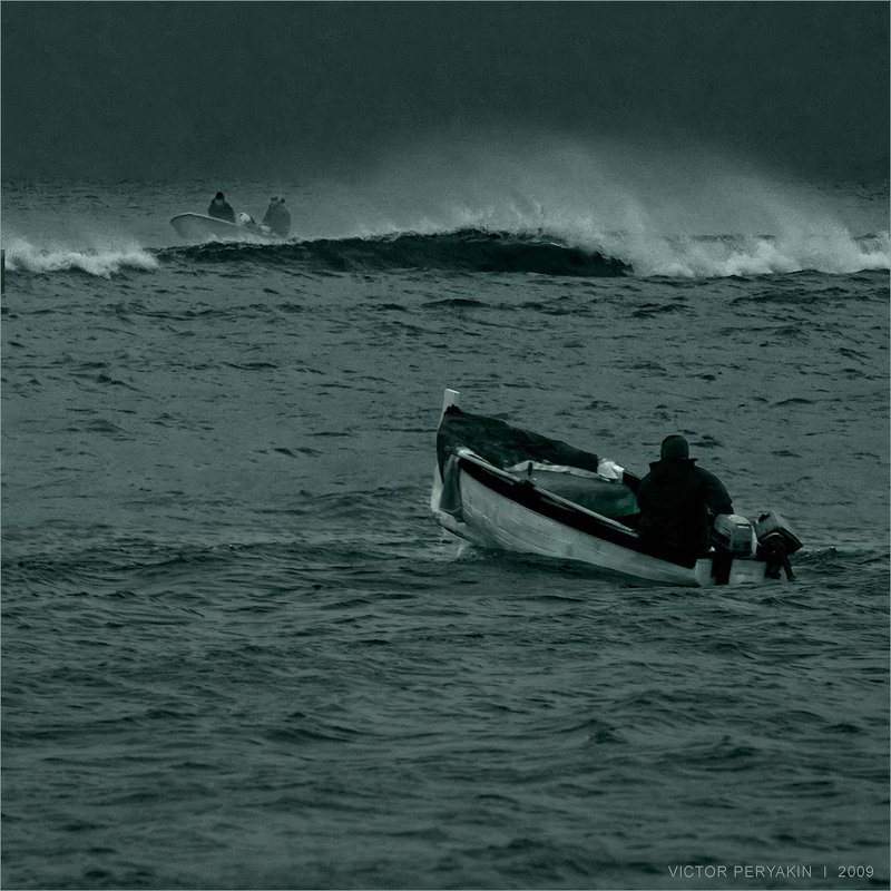 стихия, море, албания, лодка, волны, рыбаки, Виктор Перякин