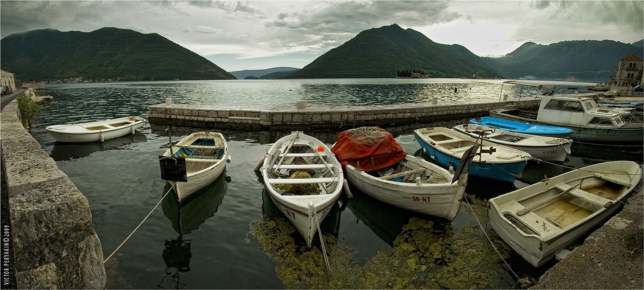 черногория, которский, залив, стоянка, лодки, вечер, набережная, рыбаки, Виктор Перякин