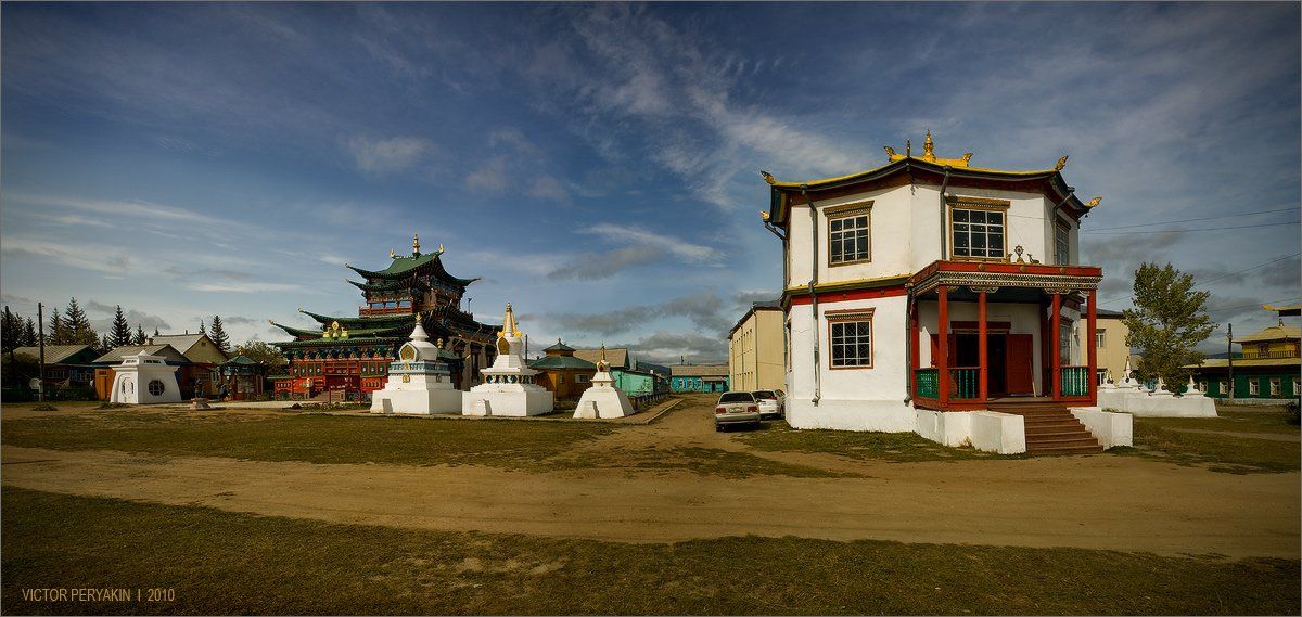 слева-Дворец Хамбо ламы Итигэлова. Справа-Дэваажин дуган.