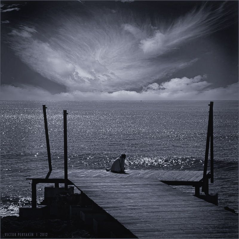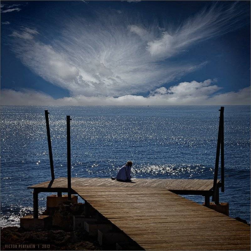 женщина-инвалид сидела на берегу и любовалась красотой моря .