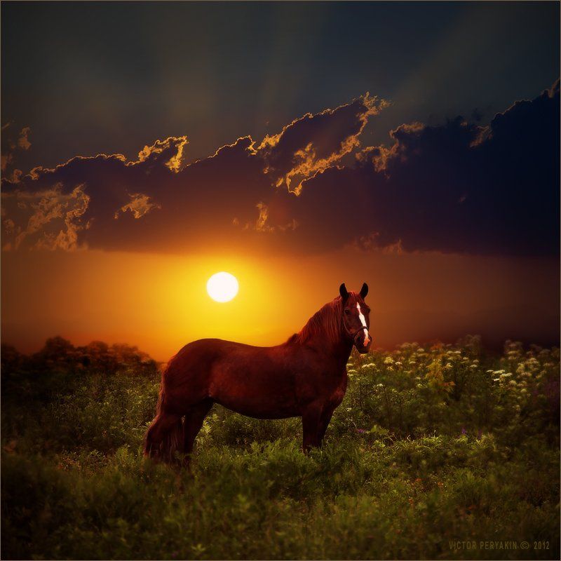 Конь остановился вдарил копытами