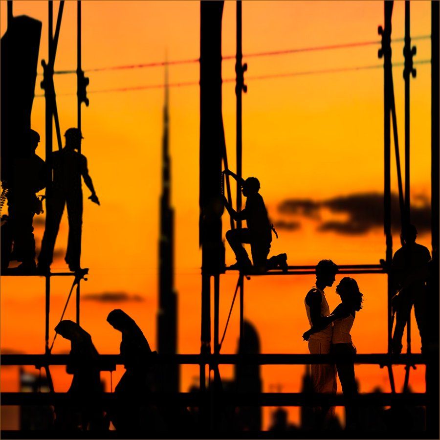 6 силуэтов и один пейзаж Дубая собраны воедино в ФШ.