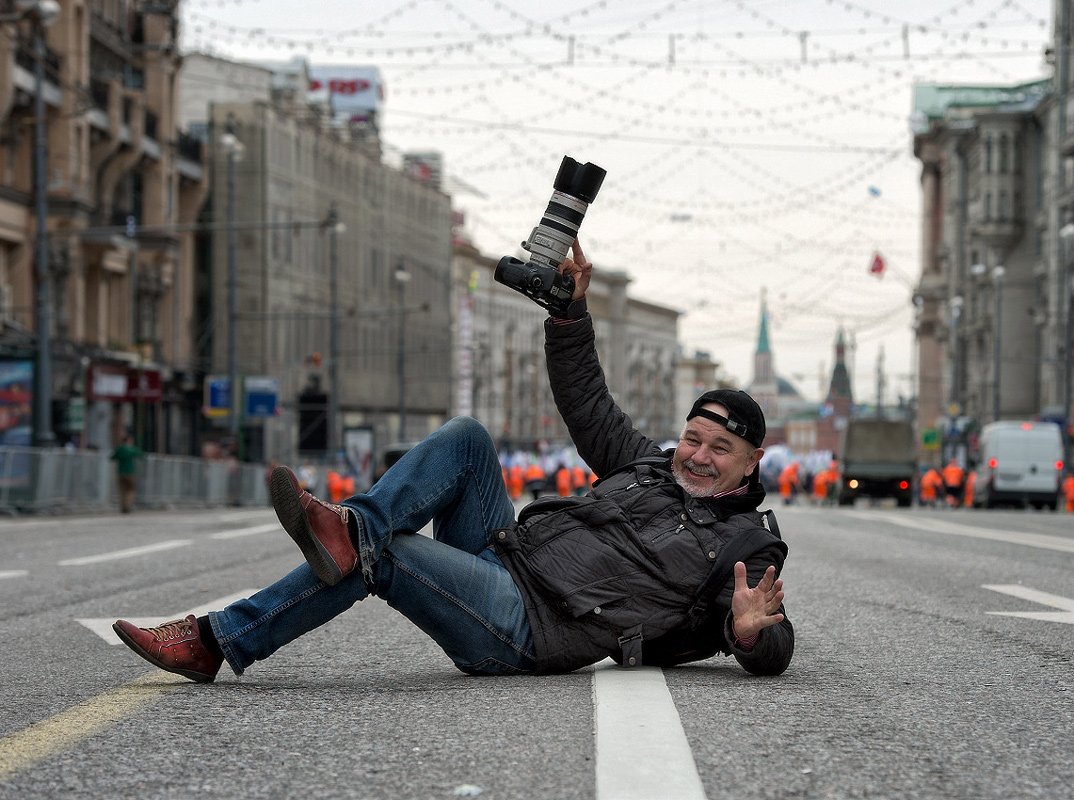 Раздеваться не стал (фонтана по близости нет), вот и пришлось позагорать на разделительной полосе для кадра. Потом эту же ситуацию повторил фотограф Сережа Мигунов.