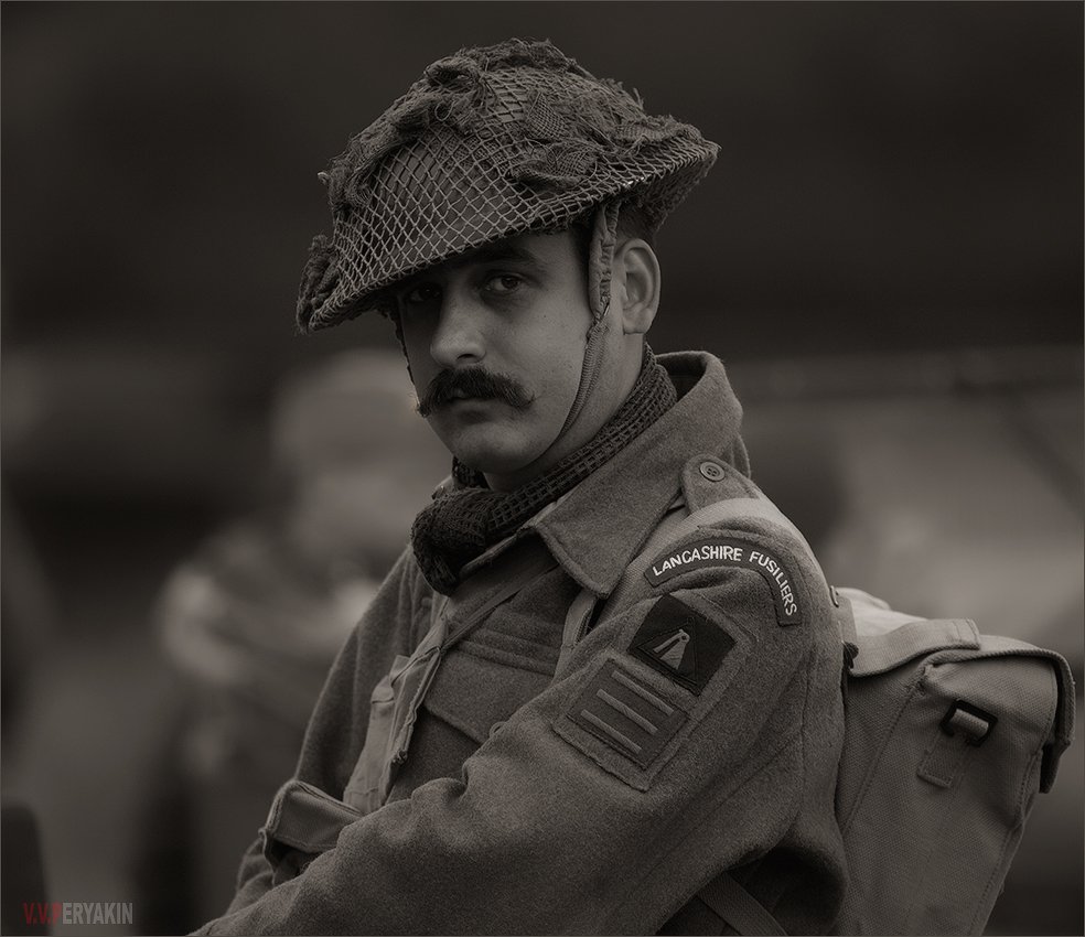В прекрасно пошитой новой форме, очень красиво.