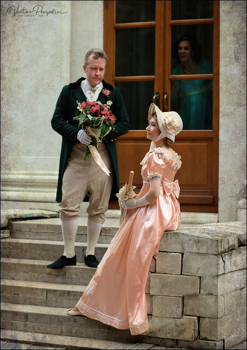 Мне показалось, что это лакей цветы несет :)