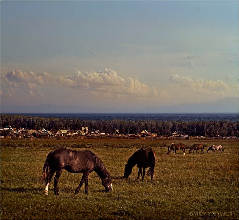 байкал, село, сухая, лошади, Виктор Перякин