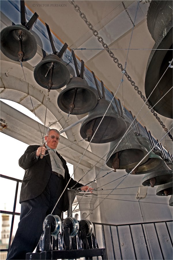 Интересно наблюдать человека в современном костюме в роли звонаря