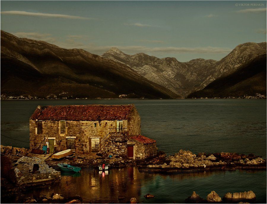 черногория, залив, лодки, бухта, горы, Виктор Перякин