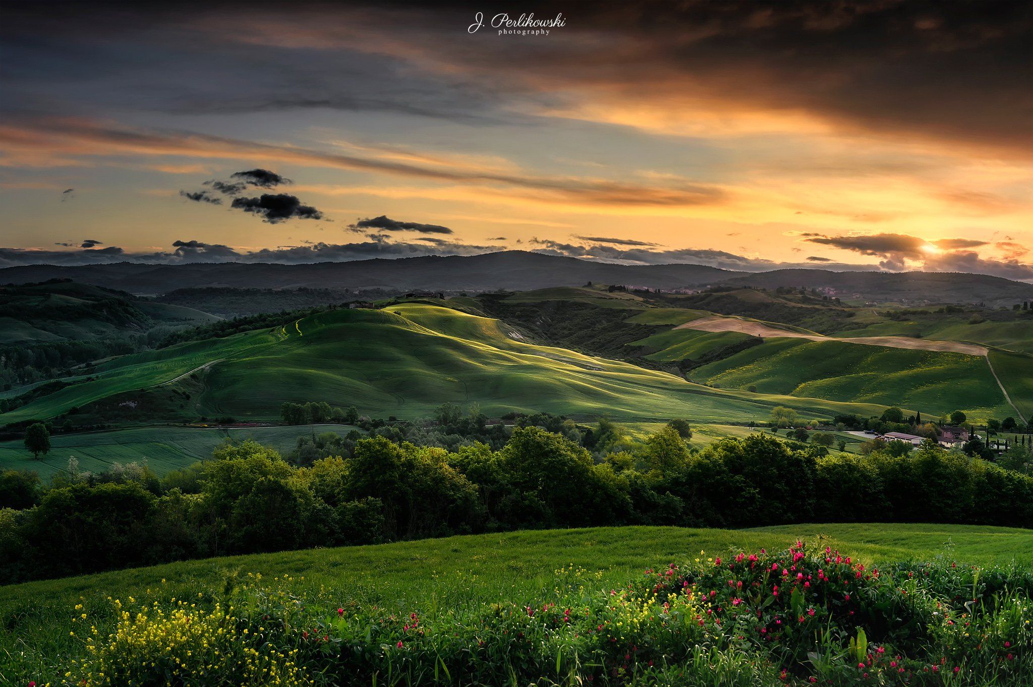 tuscany, landscape, italy, cypres hill, green fields,, Jakub Perlikowski