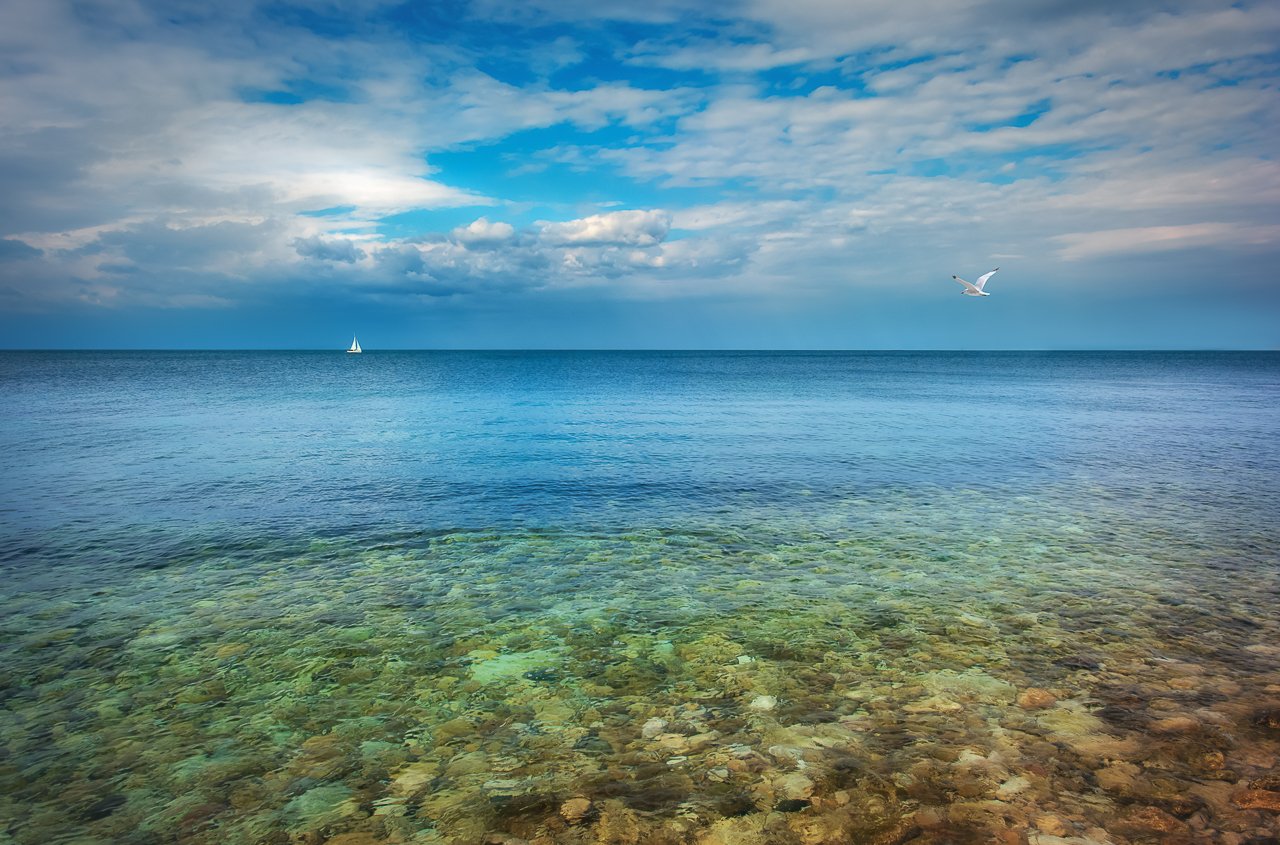 Море, Небо, Облака, Чайка, Яхта, Сергей Нестеров