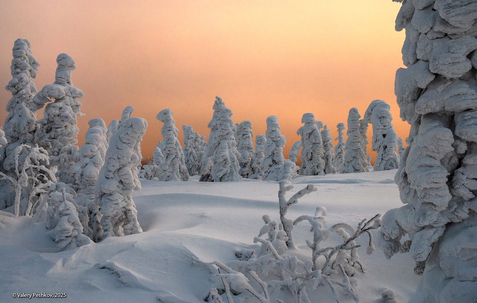 Чудесный зимний день на горе Зелёной завершил розовый вечер. Закат нам, правда, не показали: солнце скрыла дымка. Но пастельные тона всё же были…