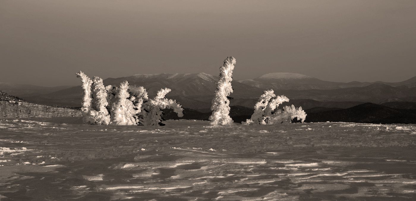 Кстати первый вариант тоже неплохой, заснеженные ёлки неплохо смотрятся в солнечных лучах.