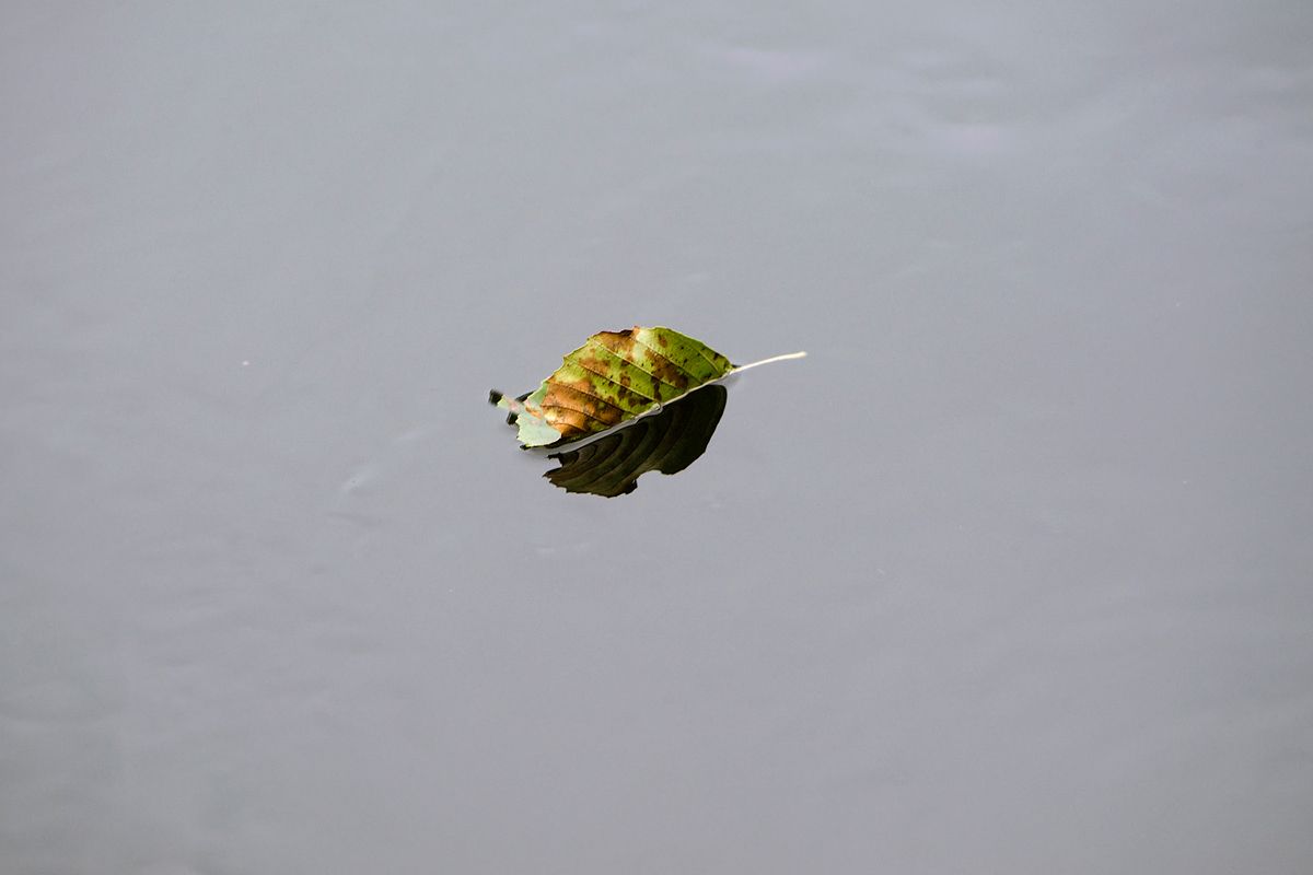 Лето закончилось. Зима на носу. Этот ольховый лист отправился в свое последнее путешествие по водам шустрой лесной речушки…