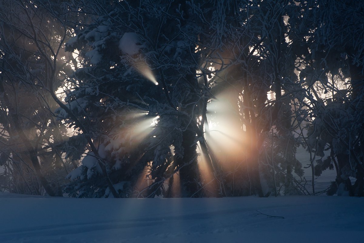 Нет, это чистый репортаж. Проезжал на лыжах мимо, увидел, бросил всё и минут 5 бегал кругами: искал точки, ждал, пока облако займет более выигрышное положение. Получилось около 10 вариантов, это кажется мне оптимальным...