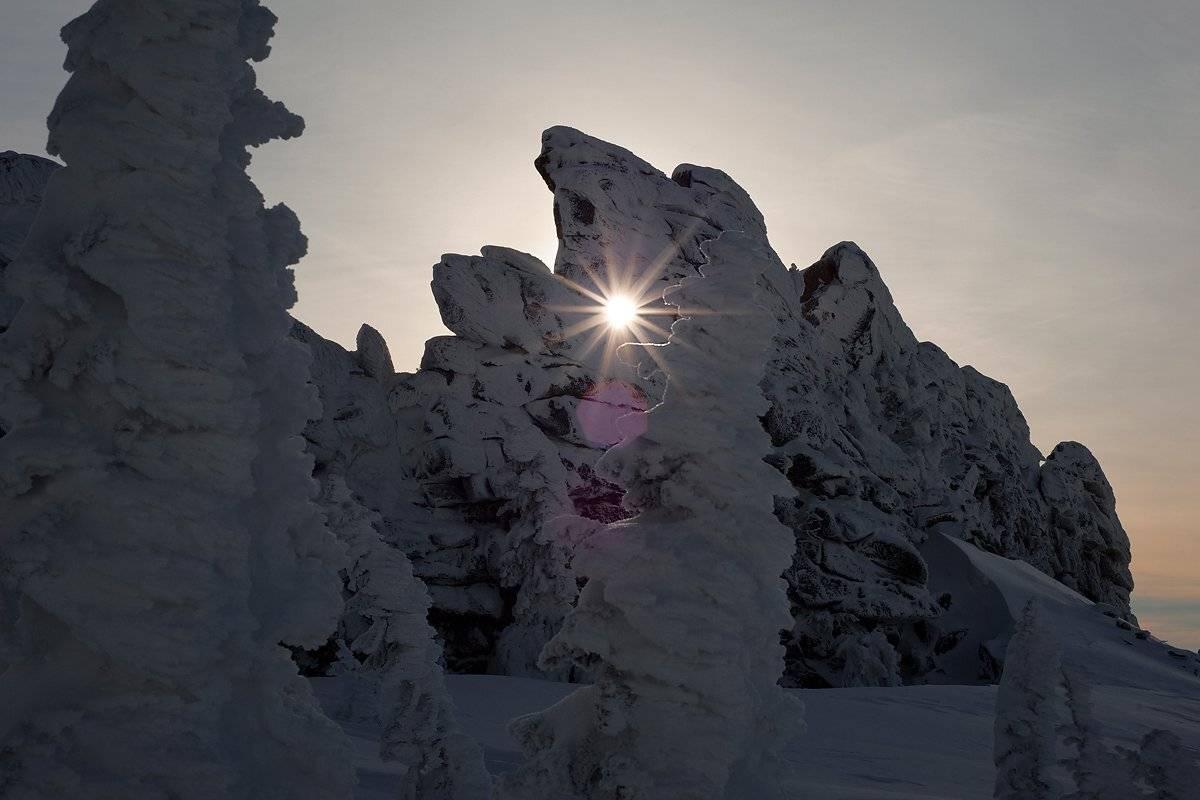 И ещё один момент: гора зелёная часто "сидит" в облаке и тогда образуется шикарный иней...