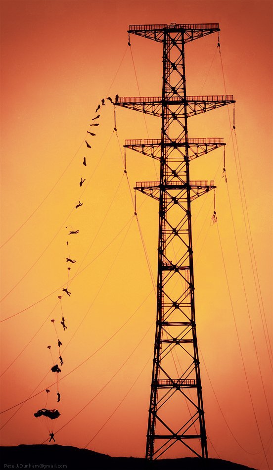 Вообще, согласен, конечно, что есть тут двусмысленность в плане уровня горизонта и исхода всего прыга =) Но понадеялся, что провода, сливающиеся с дп, да и недосказанность пересечения силуэта ЛЭП с силуэтом земли, всё же даст зрителю понять «ху есть ху».