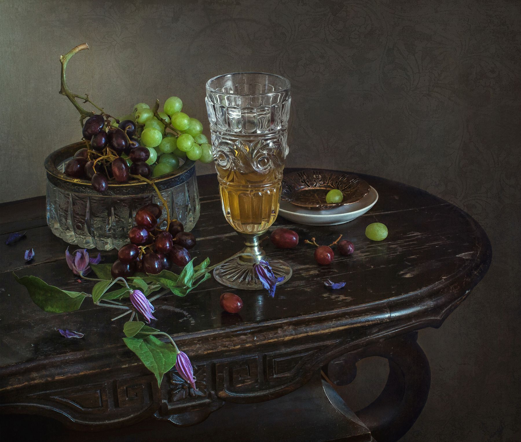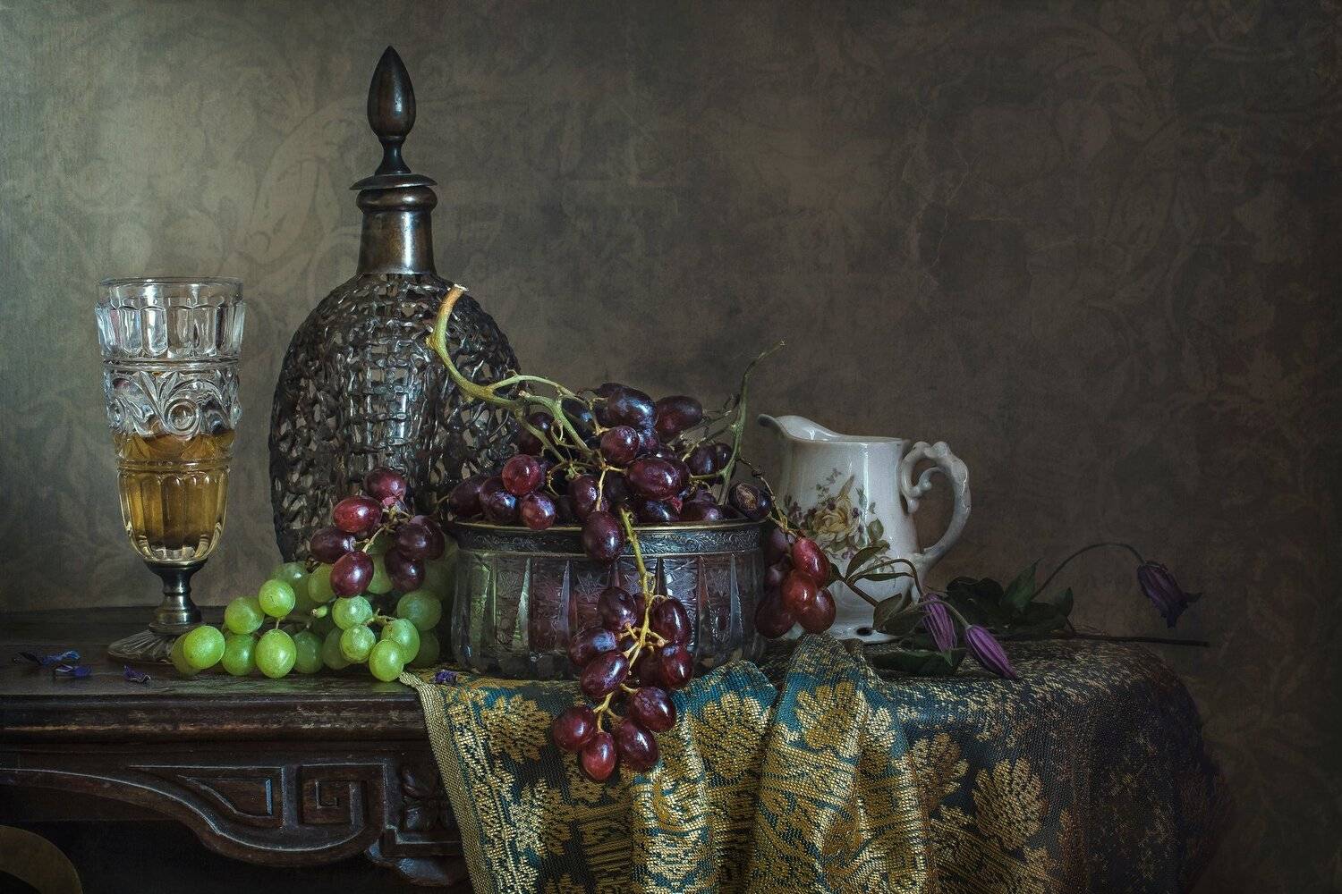 натюрмортхрустальстеклографинбокалвиноград