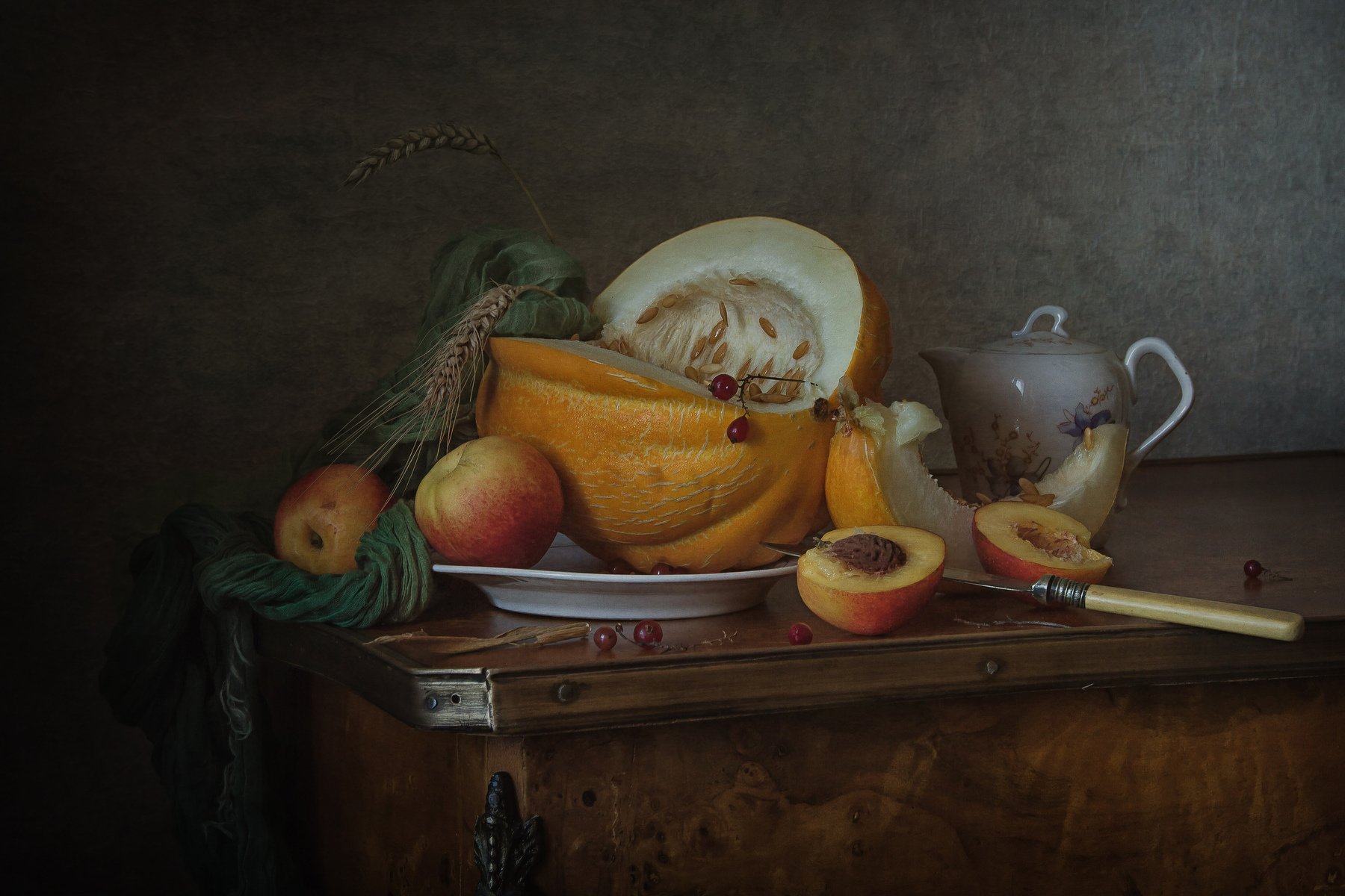 натюрморт, фарфор, дыня, нектарин, Анна Петина