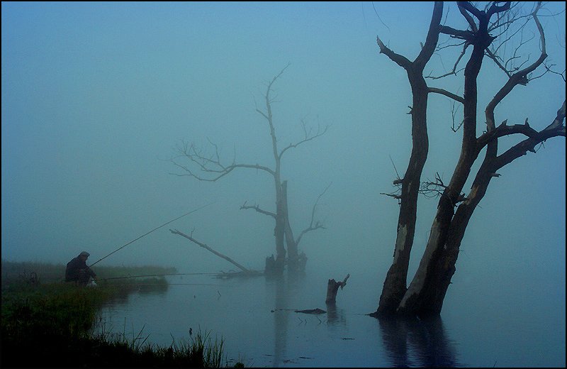 водоём, туман, утро, рыбак, Петриченко Валерий