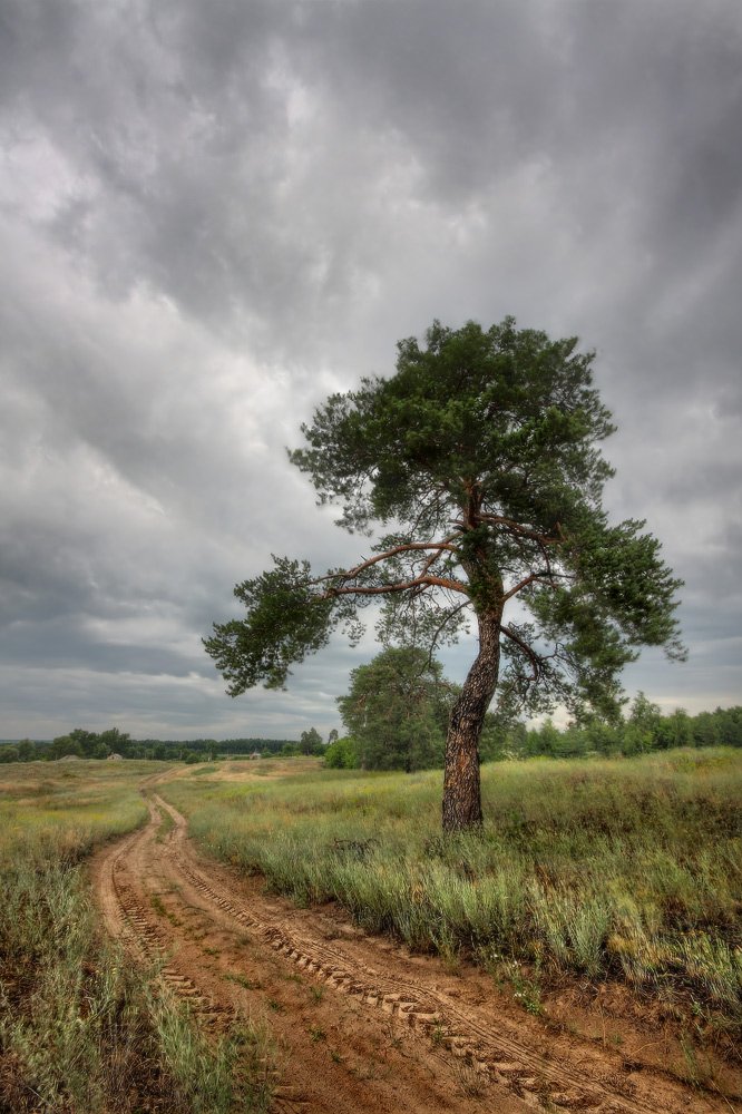 дорога, лето, тучи, сосна, Петриченко Валерий