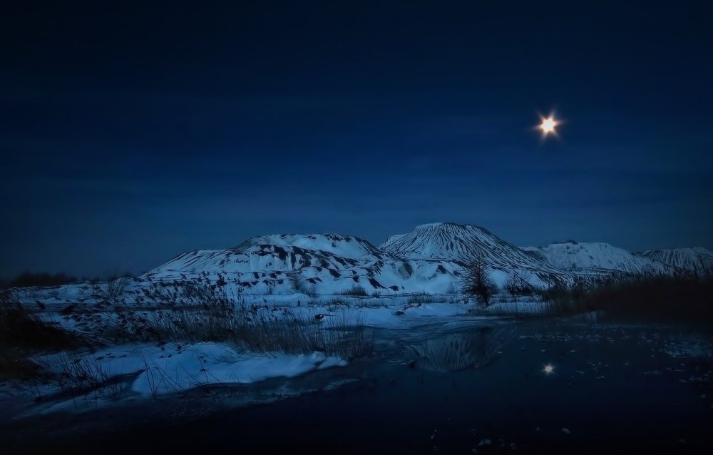 зима, террикон, луна., снег, горловка, Петриченко Валерий