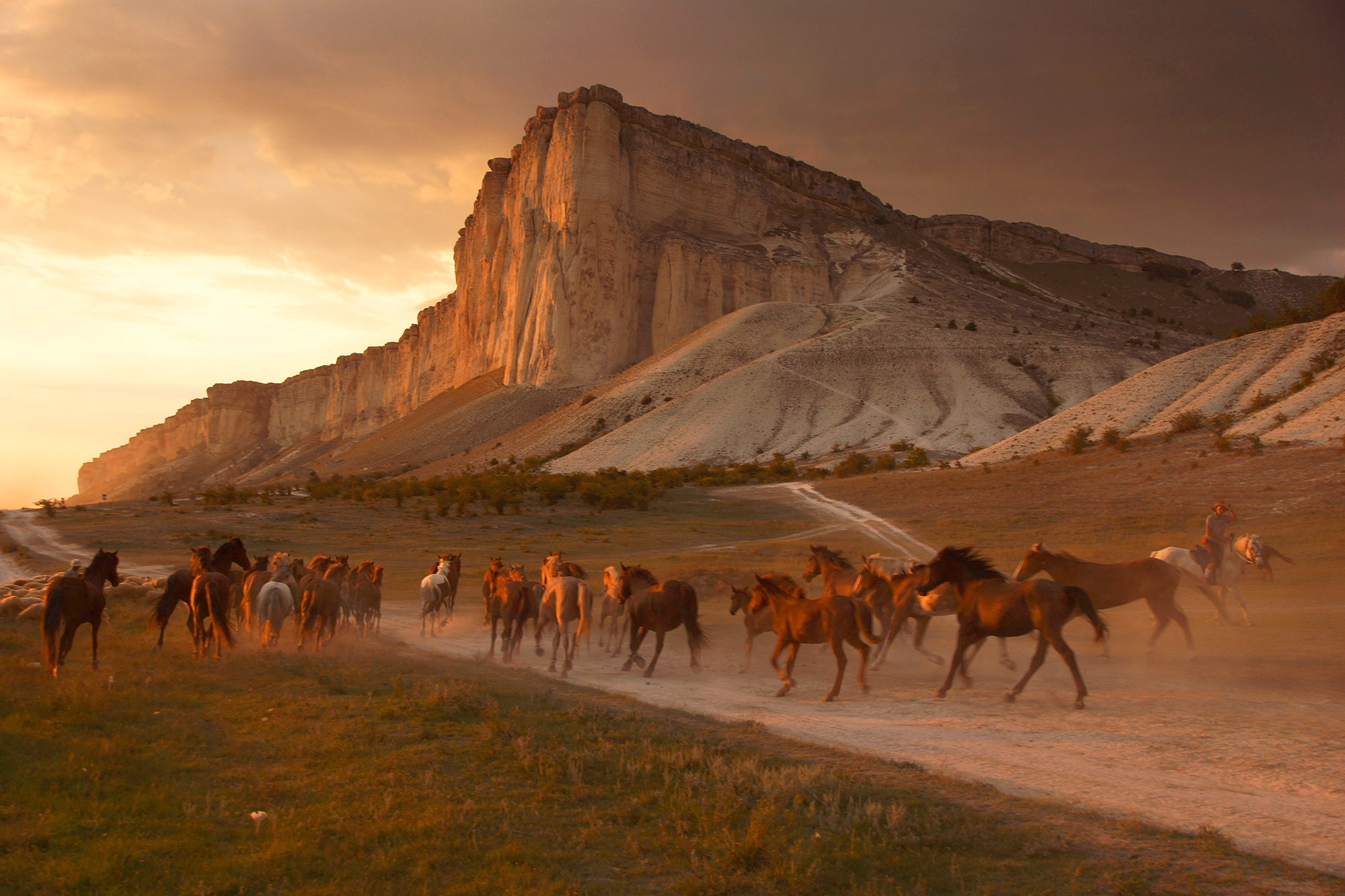Скакунов ведёт ветер, а скала — вспоминает закат. 🌅