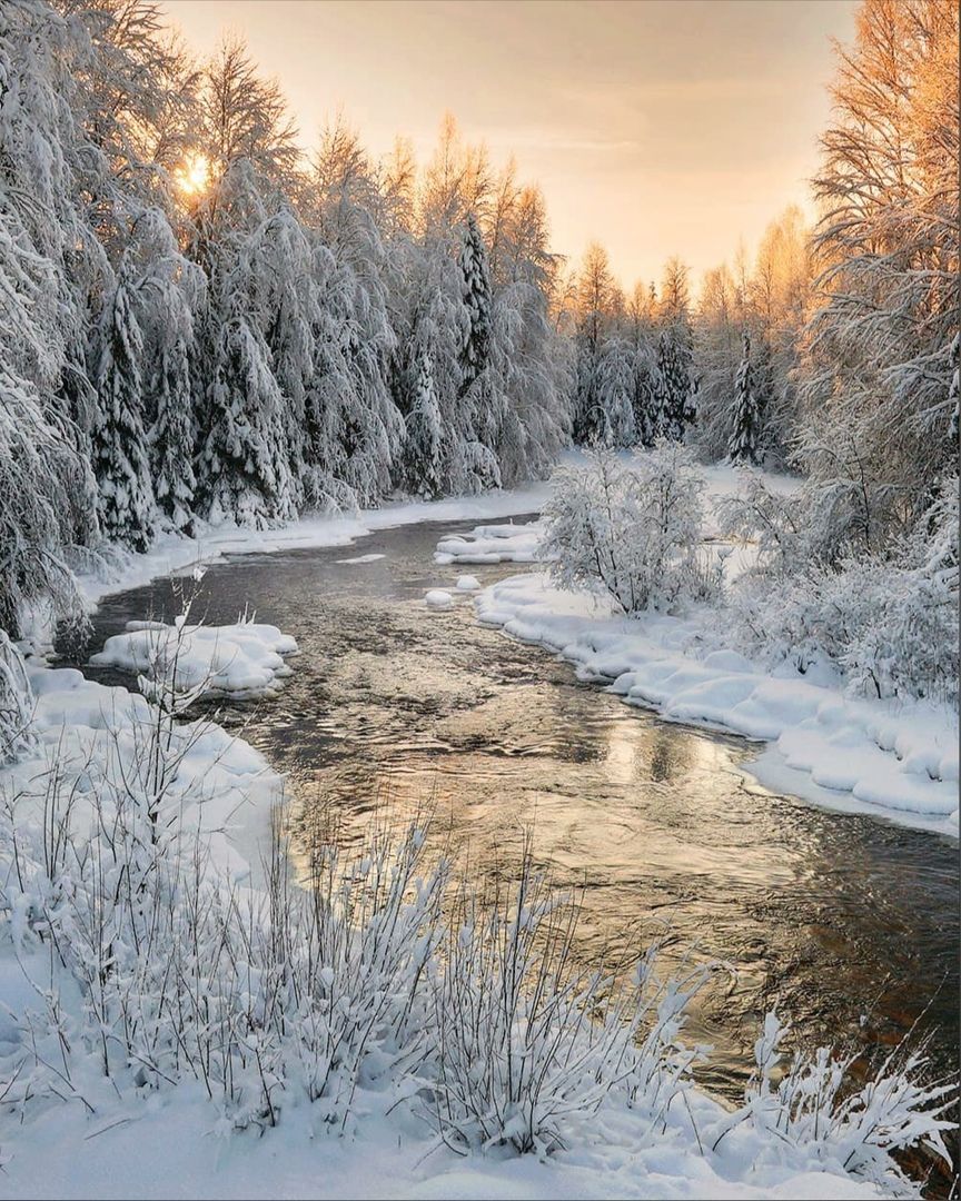 зима, карелия, рассвет, река, Петр Косых
