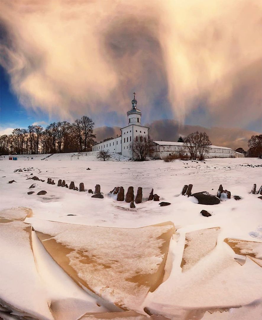 церовь, небо, архитектура, новгород, зима, Петр Косых