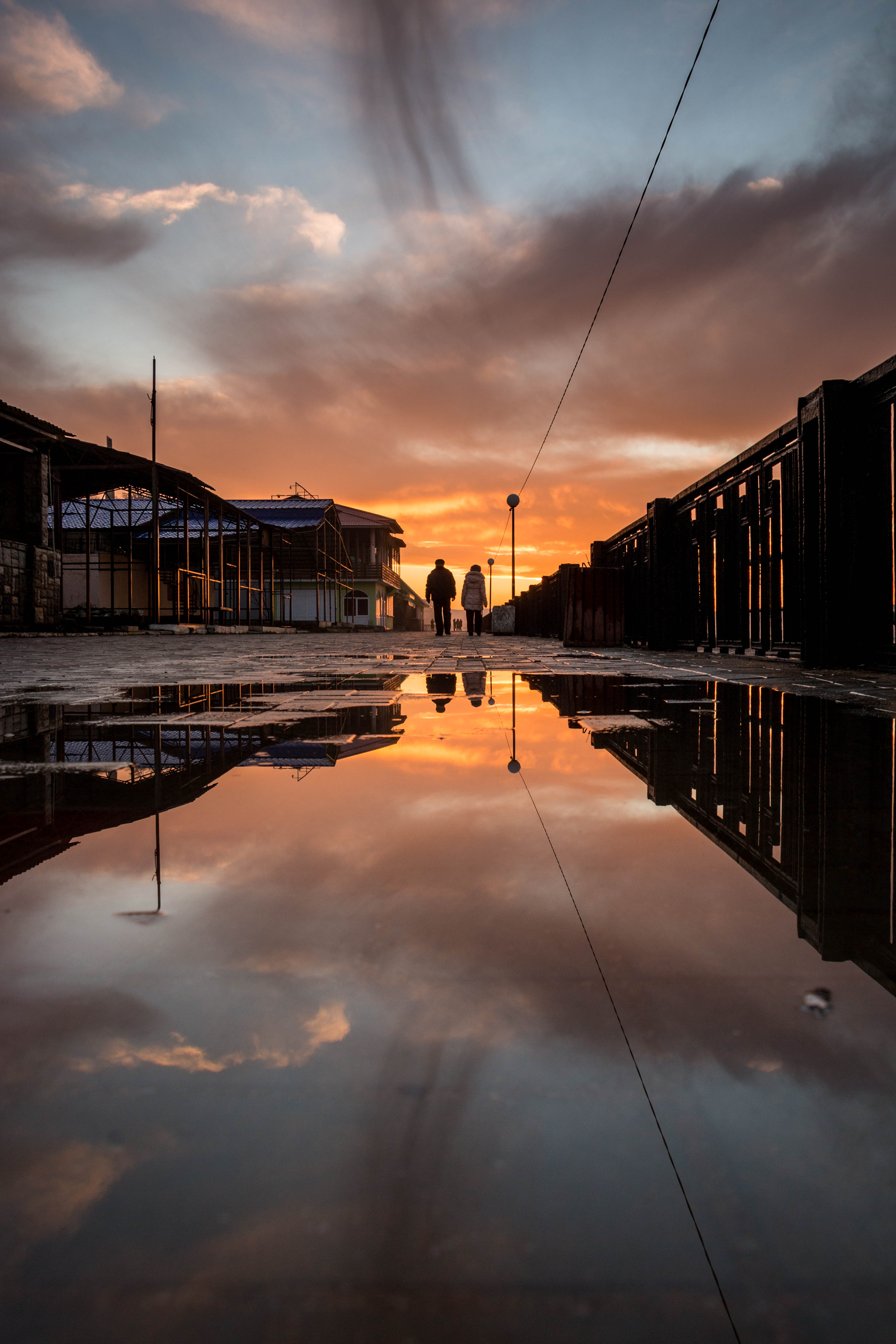Вечер, Вода, Закат, Краски, Лужа, Отражение, Улица, Фото вдвоем, Андрей Петрук