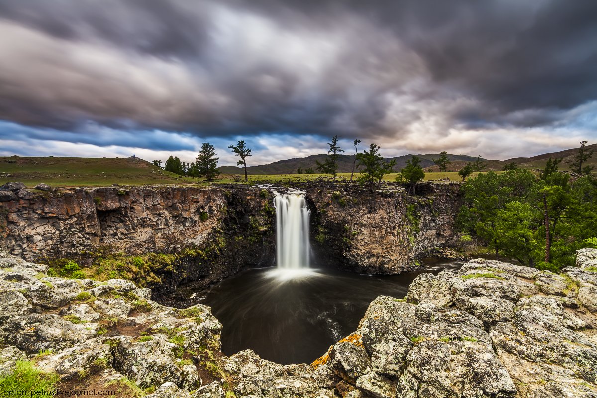 Самый красивый водопад Монголии. Если честно - единственный увиденный. Но потрясающе красивый. В небольшом каньоне, поросшем настоящим лесом - для Монголии просто чудо ) Рассвет был пасмурным, но от этого не менее фотогеничным. Облака неслись по небу с дикой скоростью, все слилось в одно - шум воды и ветра...