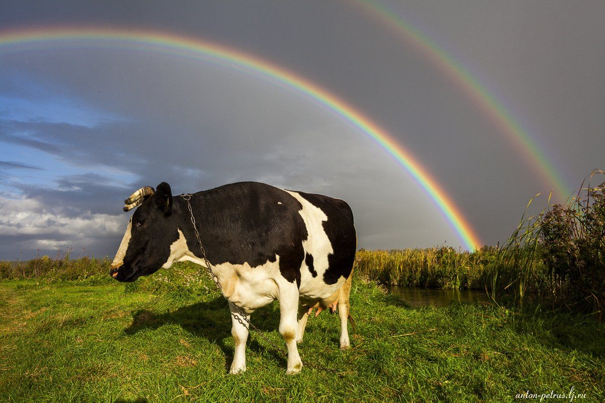 Побежал дальше - корова! И радуга все это время горела полной дугой. Давно я такого не видел...