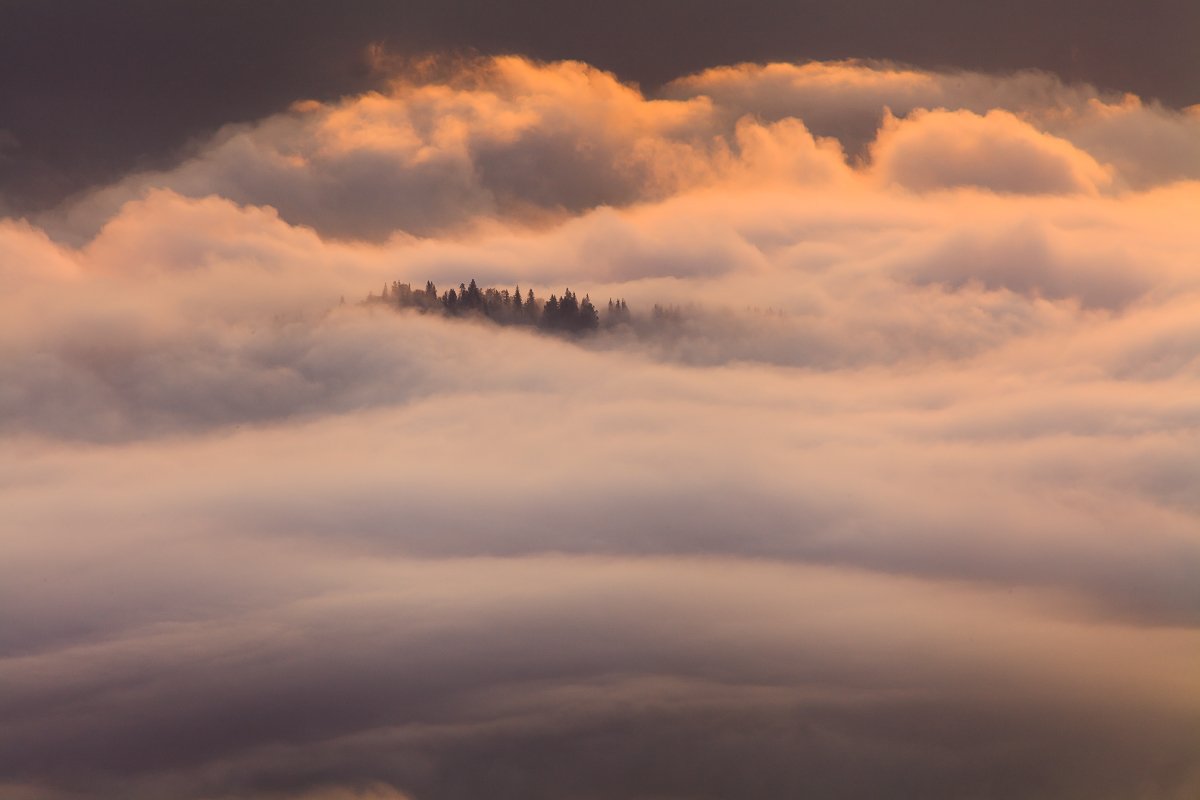 Туманный рассвет в Карпатах, вид с горы Вухатый камень. Один из самых сочных рассветов в моей практике. Стоишь на горе, а под ногами разливается целое море тумана..И он начинает светится с восходом солнца! Картина сказочная...