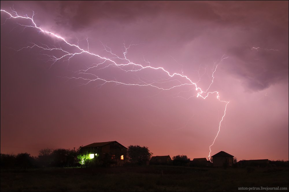 гроза,молния,небо,поле,дом, Антон Петрусь
