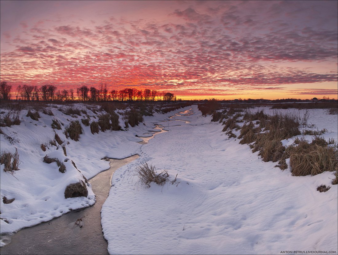 закат,зима,снег,лед, барышевка, река,небо, Антон Петрусь