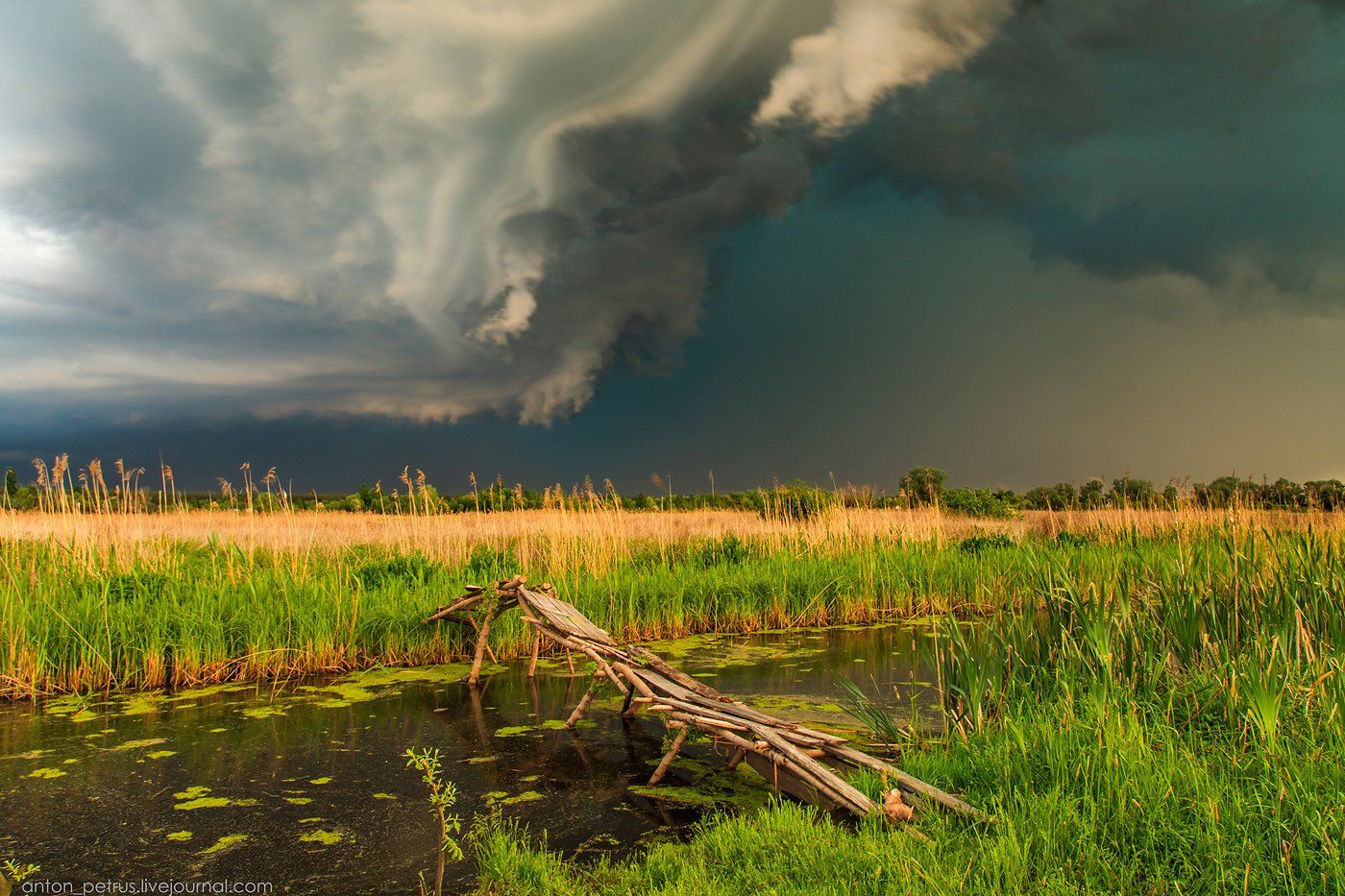 Самые лучшие кадры всегда снимаешь возле дома. На фото - грозовой воротник. облако, которое предвещает шквал, ливень и все ужасы непогоды. Этот грозовой фронт принес шквал - сильный ветер лупил в лицо, капли были похожи на градины, наверно синяки остались )) Последние кадры отсняты и я побежал домой. Но не добежал - ветер просто с ног валил, а дождь летел параллельно земле... Я пришел домой мокрый, но счастливый