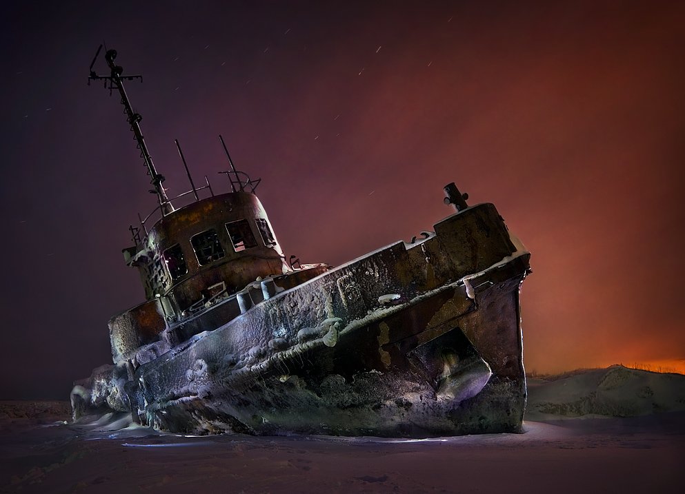 нажал на тросик и попрыгал к кораблю, низ освещал в основном вспышкой, ну а мелкие детали обрабатывал фонариком, который дает синеву.
