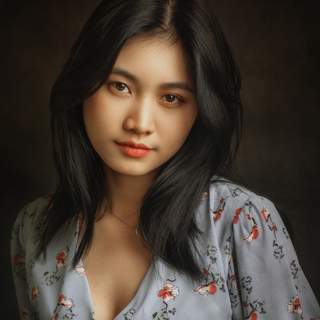 На снимке — портрет молодой вьетнамской женщины, обернутой в насыщенный красный шарф, который контрастирует с тёмным фоном. Её взгляд открытый, улыбка искренняя, а мягкий свет подчёркивает естественную красоту лица. Фотография передаёт внутреннюю гармонию и спокойствие, несмотря на простоту композиции. Работа Hoang Viet Nguyen демонстрирует мастерство в портретной съёмке, акцентируя внимание на выражении и цвете. Красный шарф становится символом яркости и силы, в то время как тёмный фон усиливает фокус на лице.