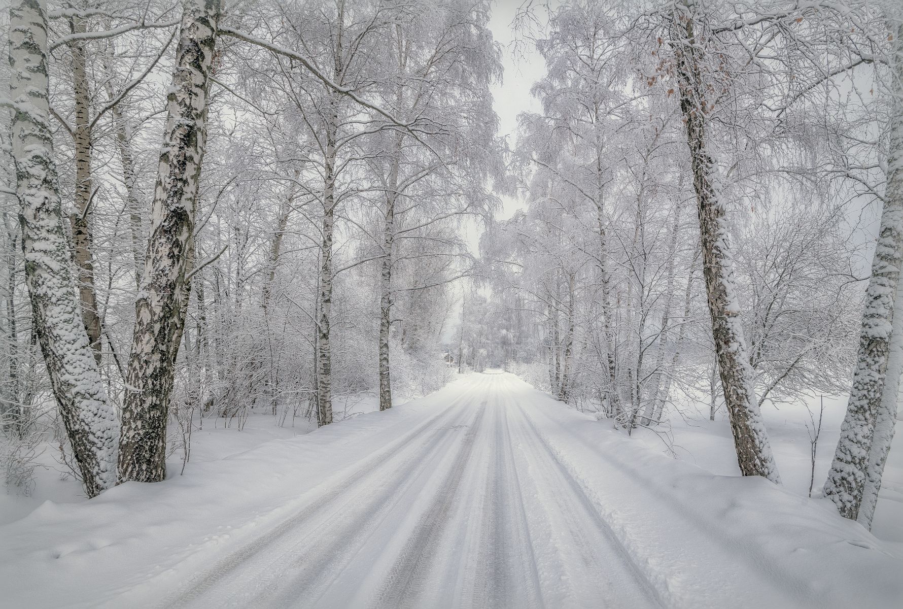 дорога, берёзы, зима, снег, иней, Сергей Аникин