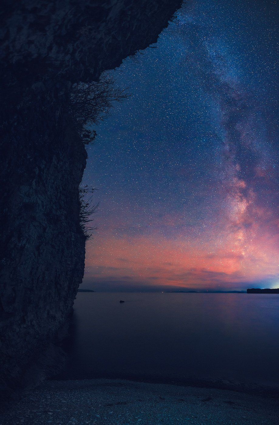 Звёзды, Млечный путь, Море, Ночь, Скала, Андрей Кровлин
